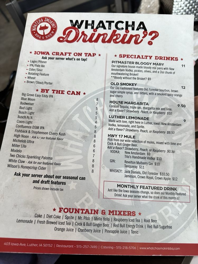 At Whatcha Smokin BBQ & Brew, the American BBQ experience reaches new heights. Tucked away in Luther, IA, this vibrant eatery serves an array of flavorful options, with a spotlight on Texas-style barbecue. Signature dishes include succulent brisket and perfectly cooked baby back ribs, complemented by a selection of five mouthwatering sauces. The casual, family-friendly atmosphere invites gatherings, whether for lunch, dinner, or special occasions.